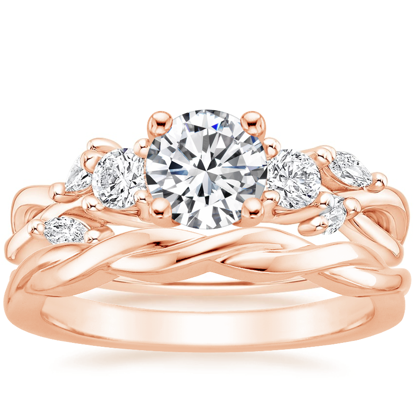 14K Rose Gold Three Stone Willow Diamond Ring (1/3 ct. tw.) with Twisted Vine Ring