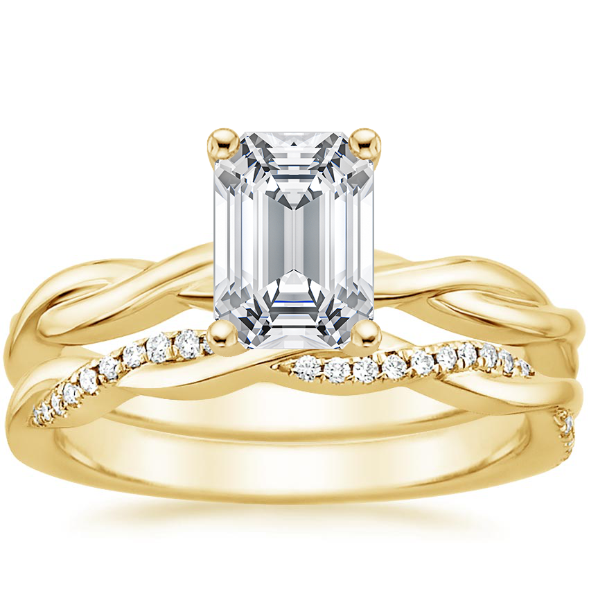 18K Yellow Gold Twisted Vine Ring with Petite Twisted Vine Diamond Ring (1/8 ct. tw.)
