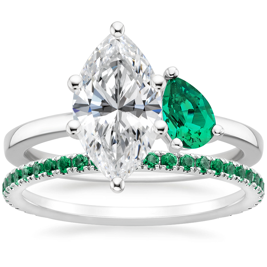 Platinum Viridian Toi et Moi Diamond Ring with Luxe Ballad Emerald Ring