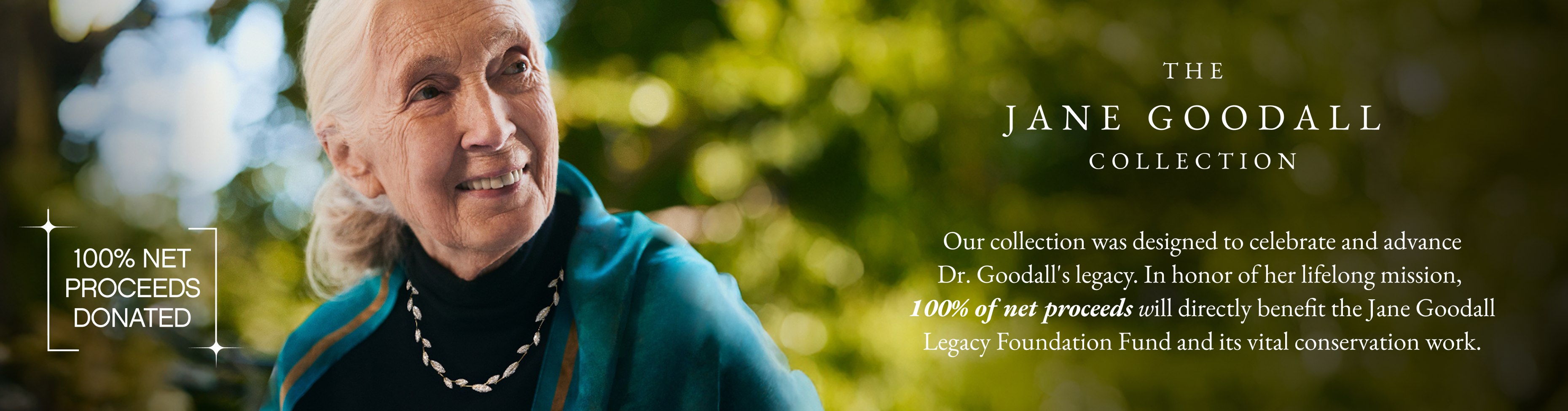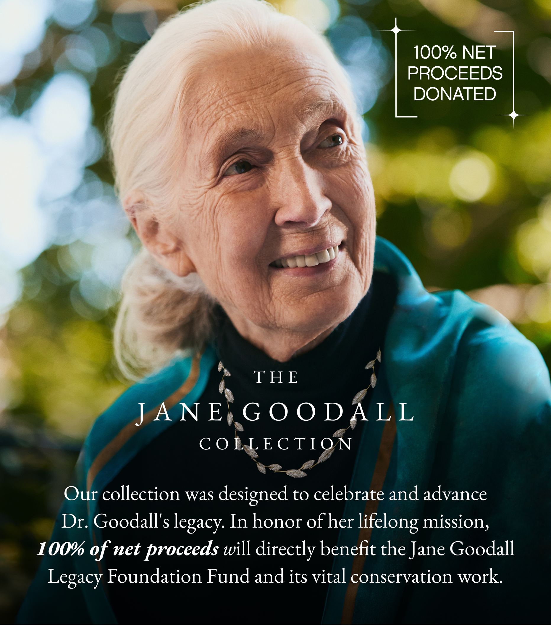 For a limited time, 100% of net proceeds from Jane Goodall Collection items will be donated to the Jane Goodall Legacy Foundation Fund to help support conservation, research, and education programs.