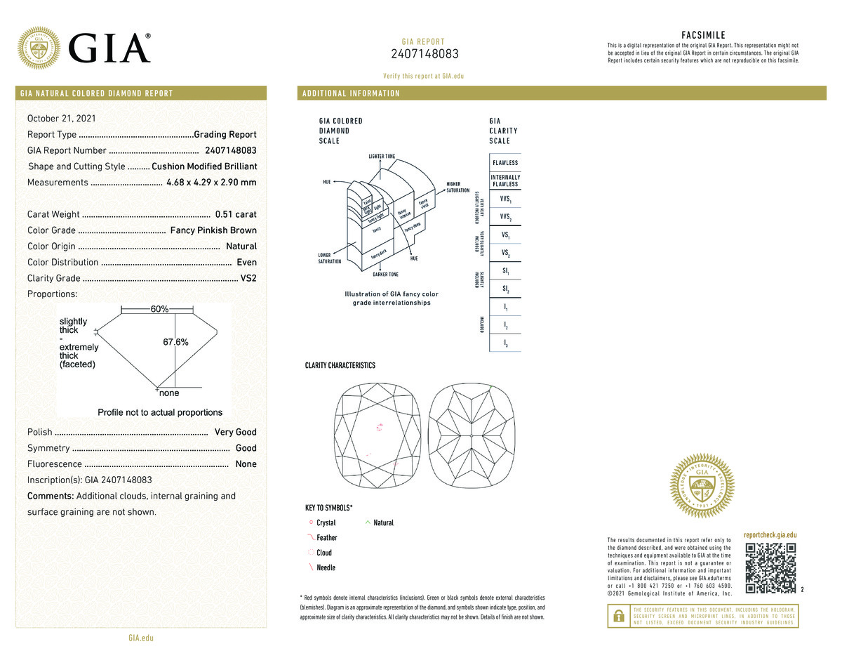 This Certified 0.51 Carat 4.68 x 4.29 x 2.90 mm Brown Cushion Diamond has been hand selected by our GIA-certified gemologists for its exceptional characteristics and rarity.