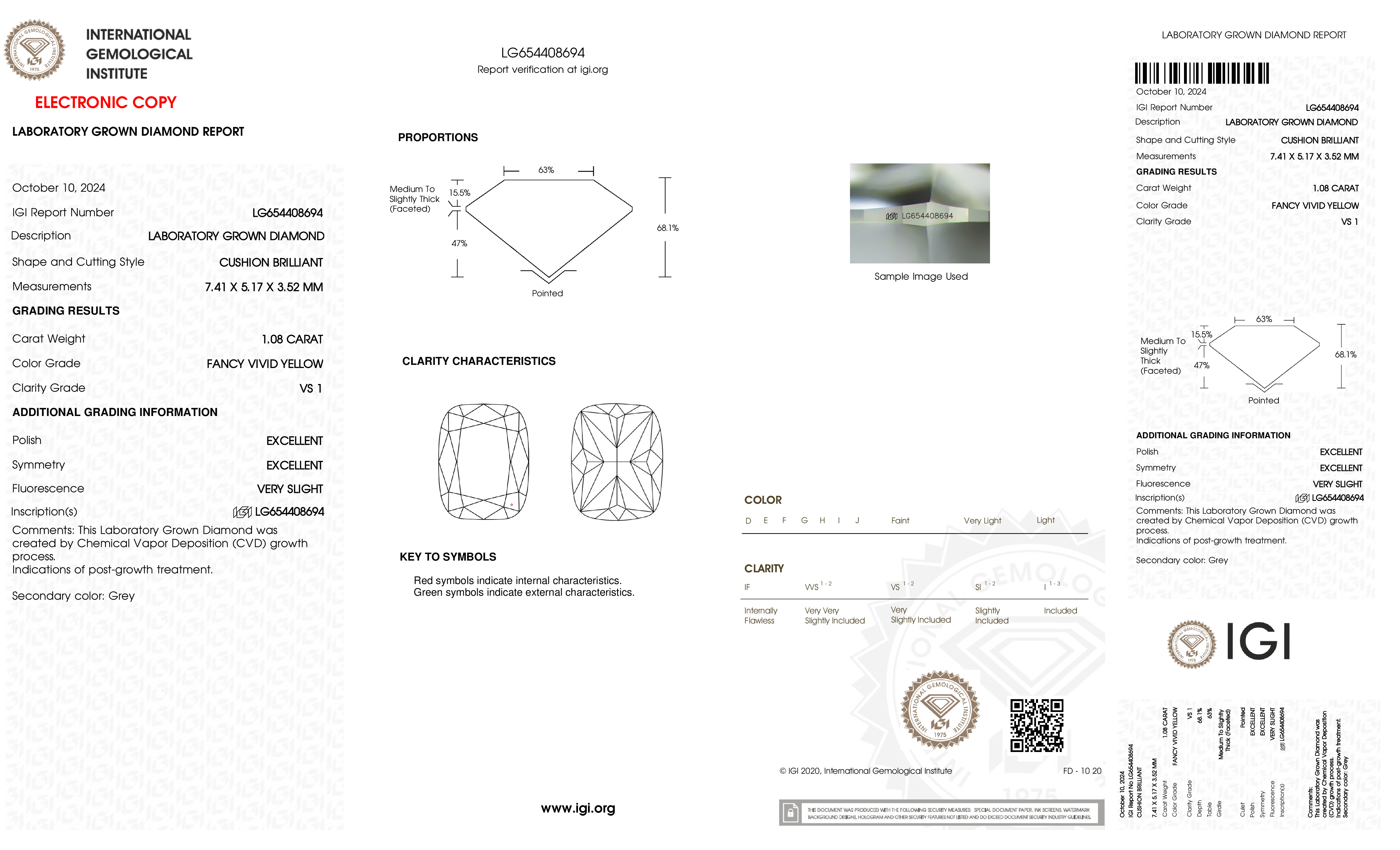 1.08 Ct. Fancy Vivid New_Mst Yellow Cushion Lab Grown Diamond