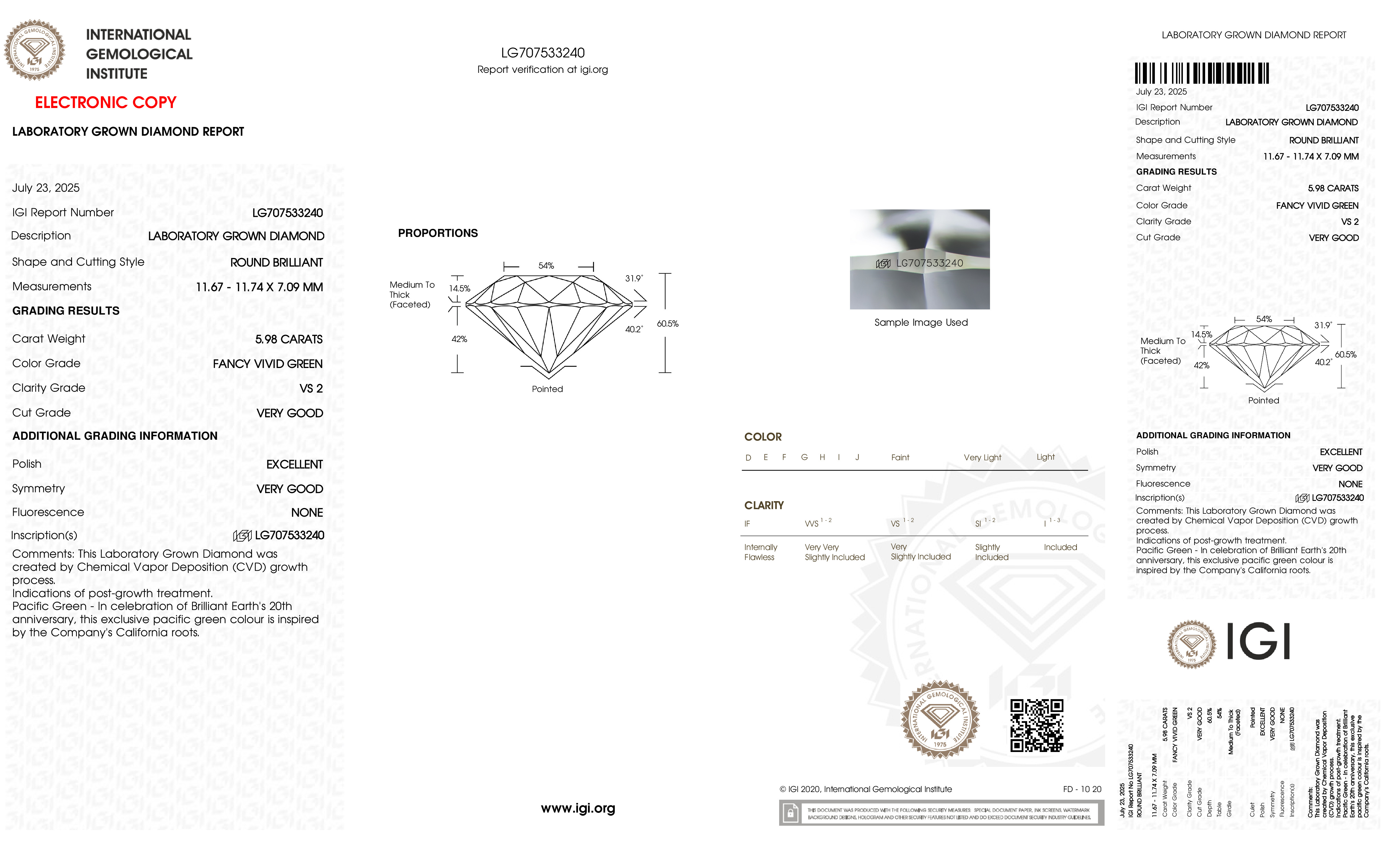 5.98 Ct. Fancy Vivid Pacific Green Round Lab Grown Diamond