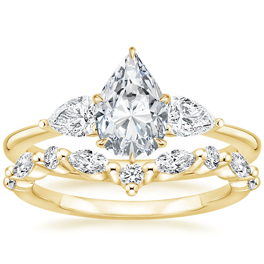 18K Yellow Gold Adorned Opera Diamond Ring (1/2 ct. tw.) with Curved Versailles Diamond Ring