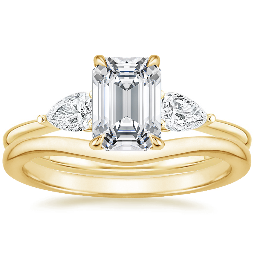 18K Yellow Gold Adorned Opera Diamond Ring (1/2 ct. tw.) with Petite Curved Wedding Ring