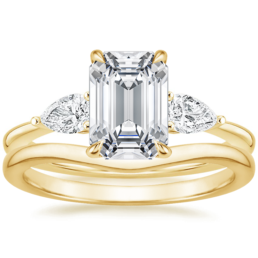 18K Yellow Gold Adorned Opera Diamond Ring (1/2 ct. tw.) with Petite Curved Wedding Ring