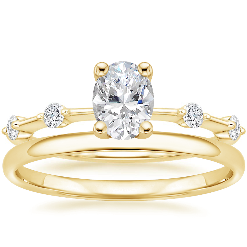 18K Yellow Gold Aimee Diamond Ring with 1.5mm Slim Profile Wedding Ring