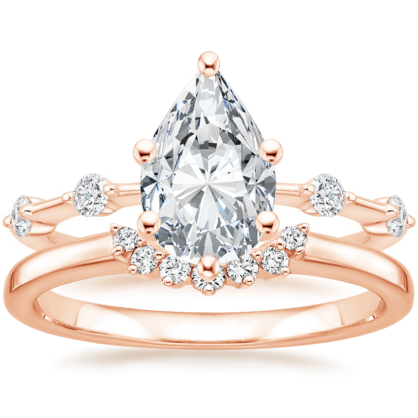 14K Rose Gold Aimee Diamond Ring with Crescent Diamond Ring