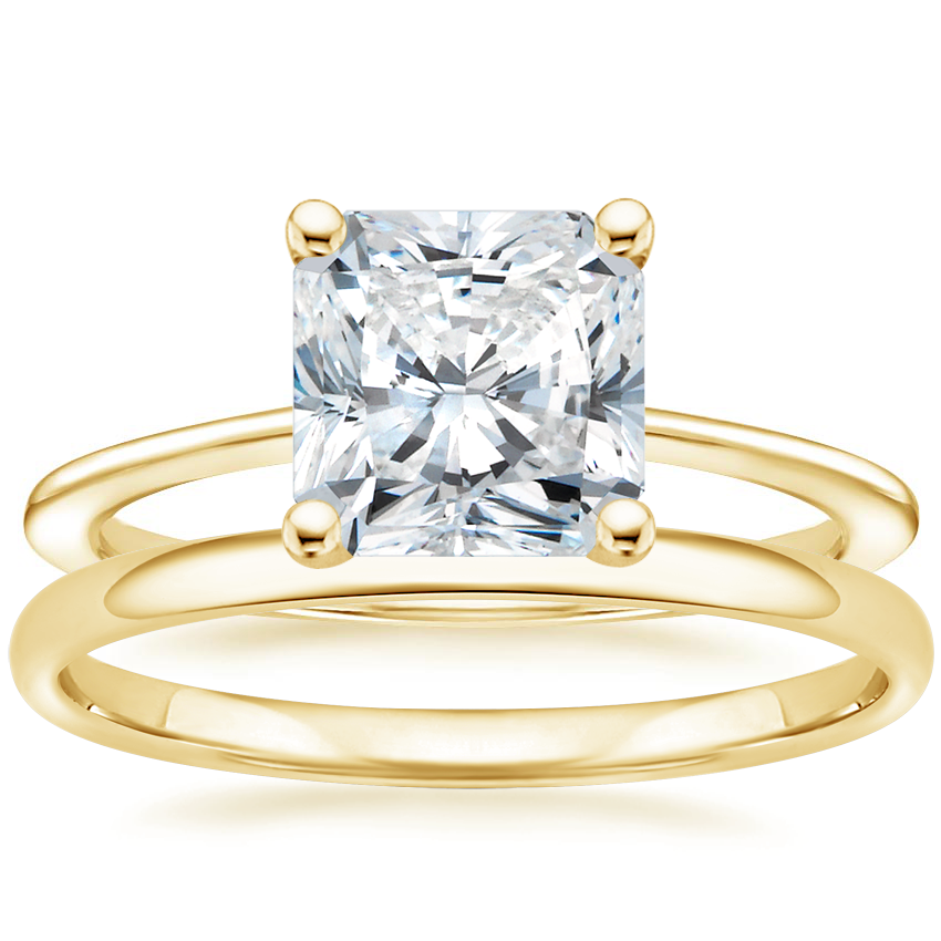 18K Yellow Gold Aimee Solitaire Ring with 1.5mm Slim Profile Wedding Ring