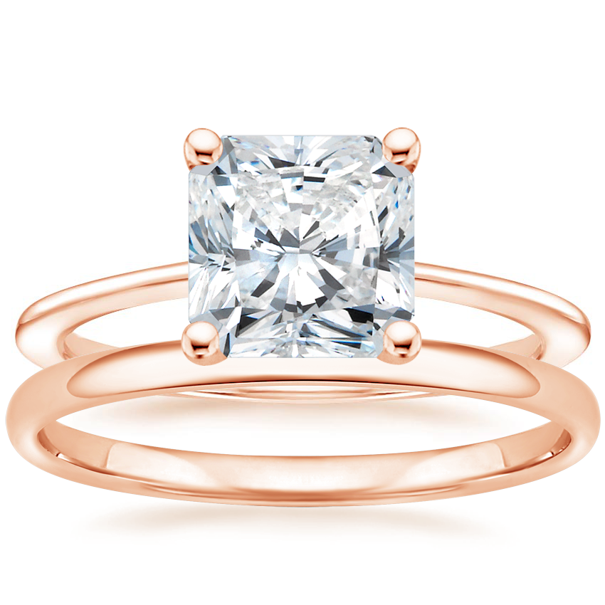 14K Rose Gold Aimee Solitaire Ring with 1.5mm Slim Profile Wedding Ring