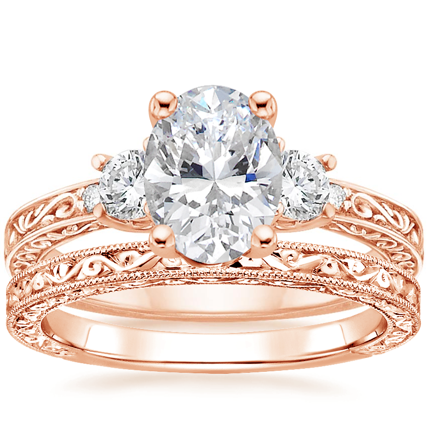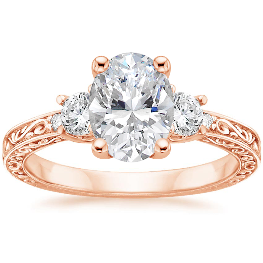 14K Rose Gold Antique Scroll Three Stone Trellis Diamond Ring (1/3 ct. tw.) with Hudson Ring