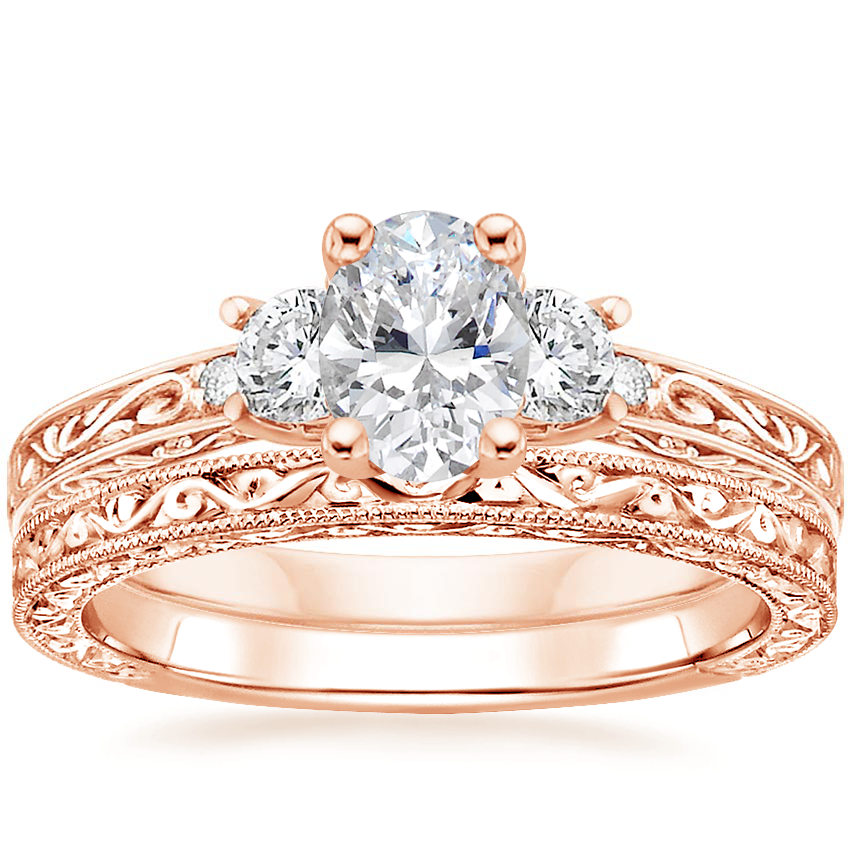 14K Rose Gold Antique Scroll Three Stone Trellis Diamond Ring (1/3 ct. tw.) with Hudson Ring