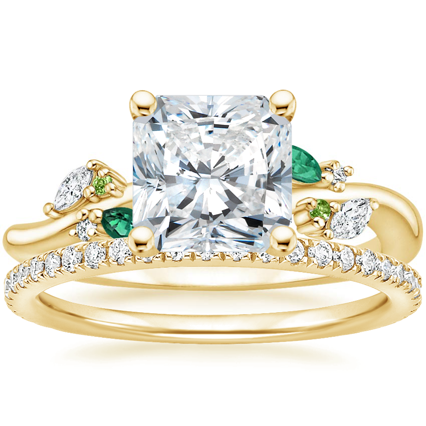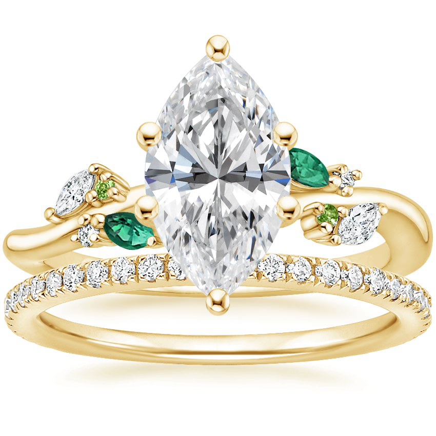 Arden Diamond Ring with Lab Emerald Accents with Luxe Ballad Diamond Ring (1/4 ct. tw.) in 18K Yellow Gold