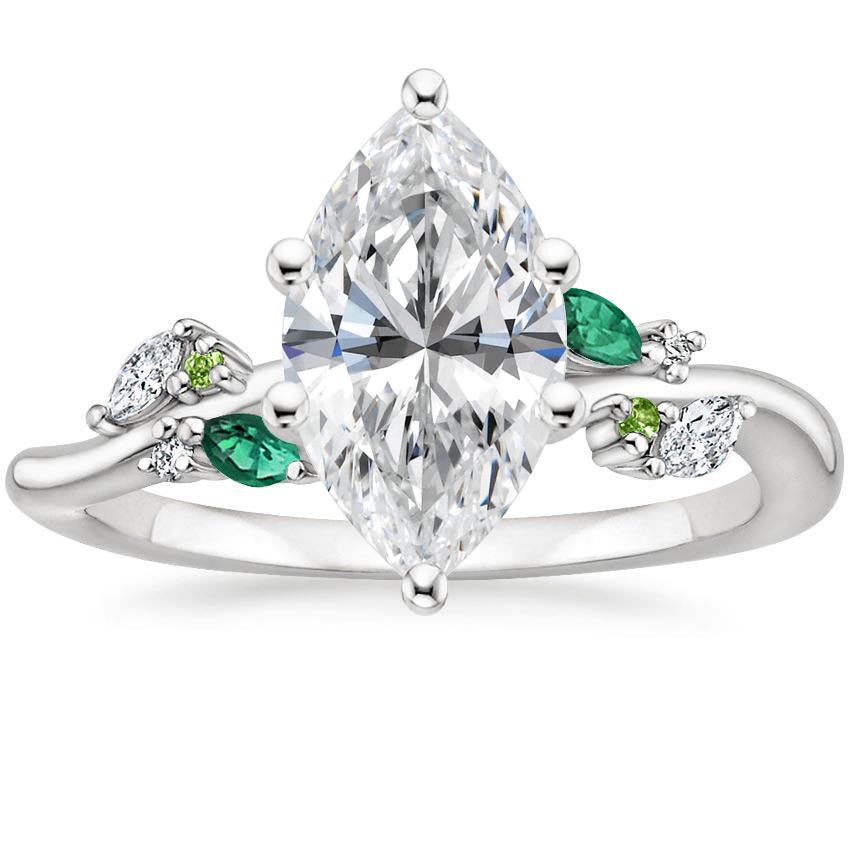 Stunning ring!!! My fiancé waned something that was classic looking with a twist, and she fell in love with the green 'leaves' on this ring. Very pleased with the beautiful and delicate design. ...Read More