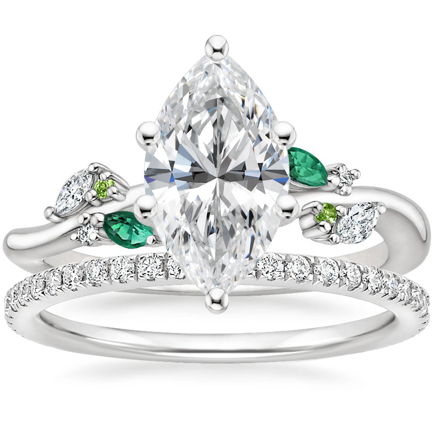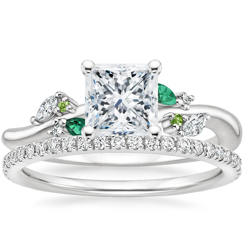 Platinum Arden Diamond Ring with Lab Emerald Accents with Luxe Ballad Diamond Ring (1/4 ct. tw.)