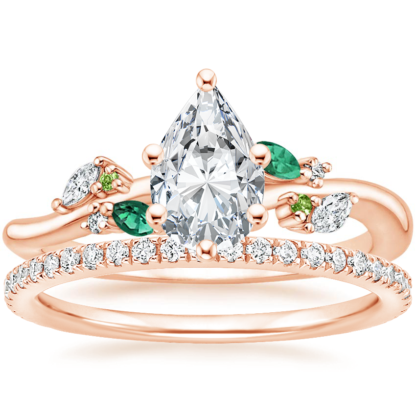 14K Rose Gold Arden Diamond Ring with Lab Emerald Accents with Luxe Ballad Diamond Ring (1/4 ct. tw.)