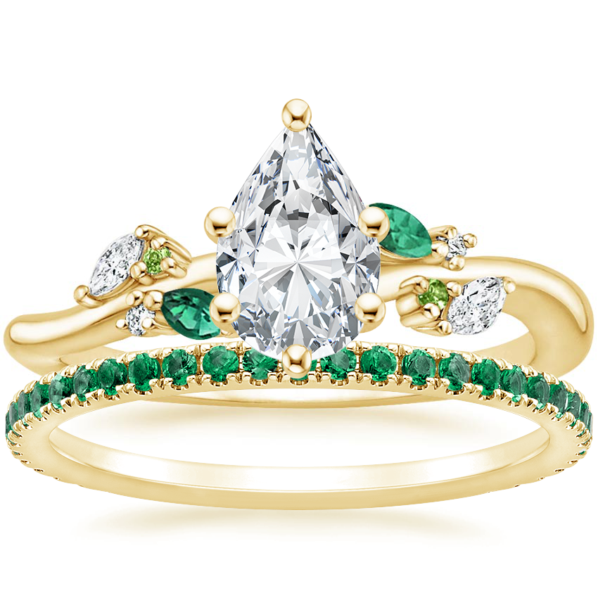 18K Yellow Gold Arden Diamond Ring with Lab Emerald Accents with Luxe Ballad Emerald Ring