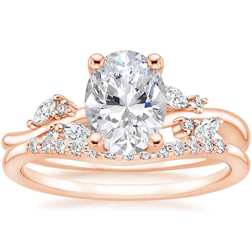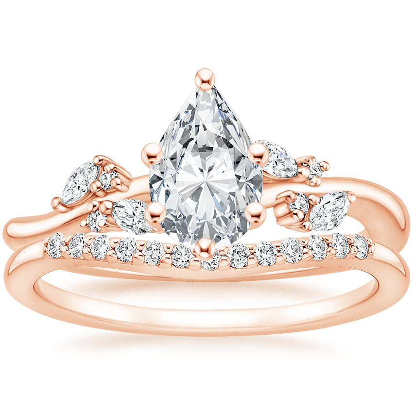 14K Rose Gold Arden Diamond Ring with Petite Curved Diamond Ring (1/10 ct. tw.)