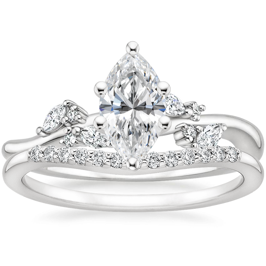 18K White Gold Arden Diamond Ring with Petite Curved Diamond Ring (1/10 ct. tw.)