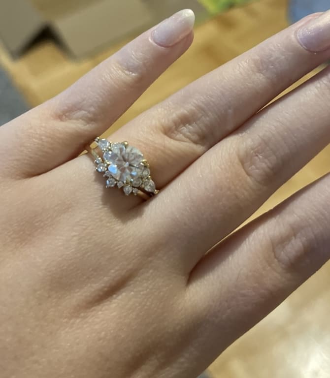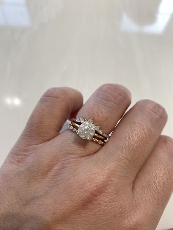 Husband bought this gorgeous ring as my push present to sit with my bridal set. We also received wonderful customer service from the Baltimore location. Just wish our gift with purchase was actually the earrings shown on the website, which was disappointing and reason why four stars. ...Read More