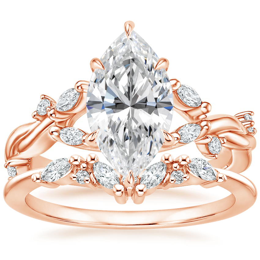 14K Rose Gold Azalea Twist Diamond Ring with Yvette Diamond Ring