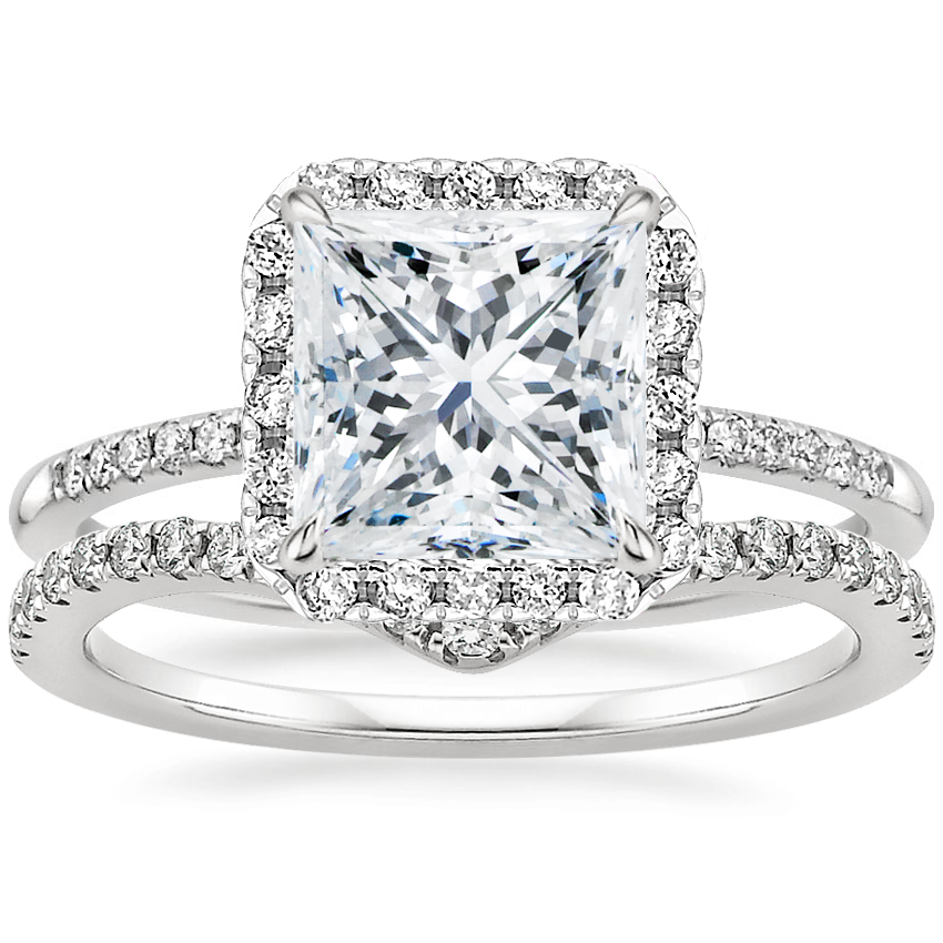 This ring is so beautiful, and my now fiancee is head-over-heels for it. She loves the delicate design, the little touch of vintage with the oval diamond, and the sparkle. The only thing I would reconsider in choosing this setting is that the open gallery sets the oval-shaped bridge flush with the shank, so we'll likely need a custom curved wedding band to pair with it for a nice nested fit. The Waverly ring is very similar but with the gallery set above the shank, so it looks like a straight band would work better with it.