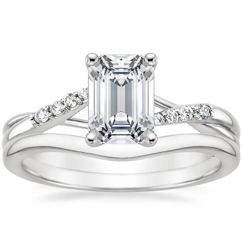 Platinum Chamise Diamond Ring (1/5 ct. tw.) with Petite Curved Wedding Ring