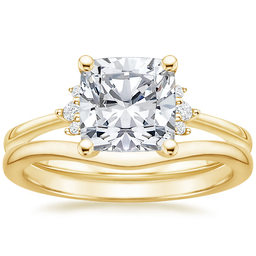18K Yellow Gold Colleen Hidden Halo Diamond Ring with Petite Curved Wedding Ring