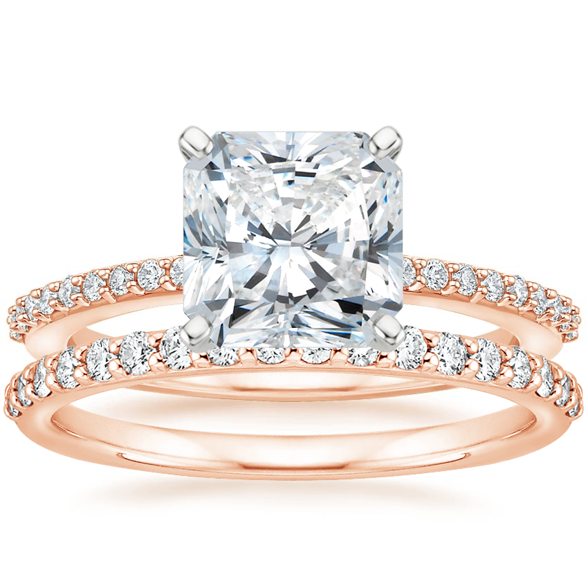 14K Rose Gold Delicate Shared Prong Diamond Ring with Petite Shared Prong Diamond Ring (1/4 ct. tw.)