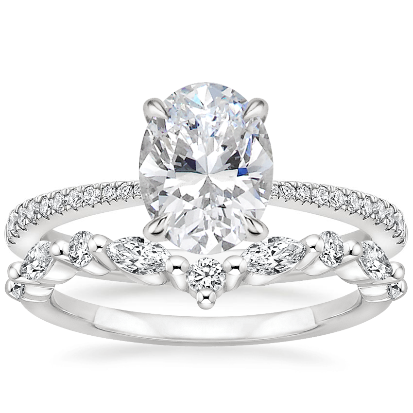 18K White Gold Elena Diamond Ring with Curved Versailles Diamond Ring