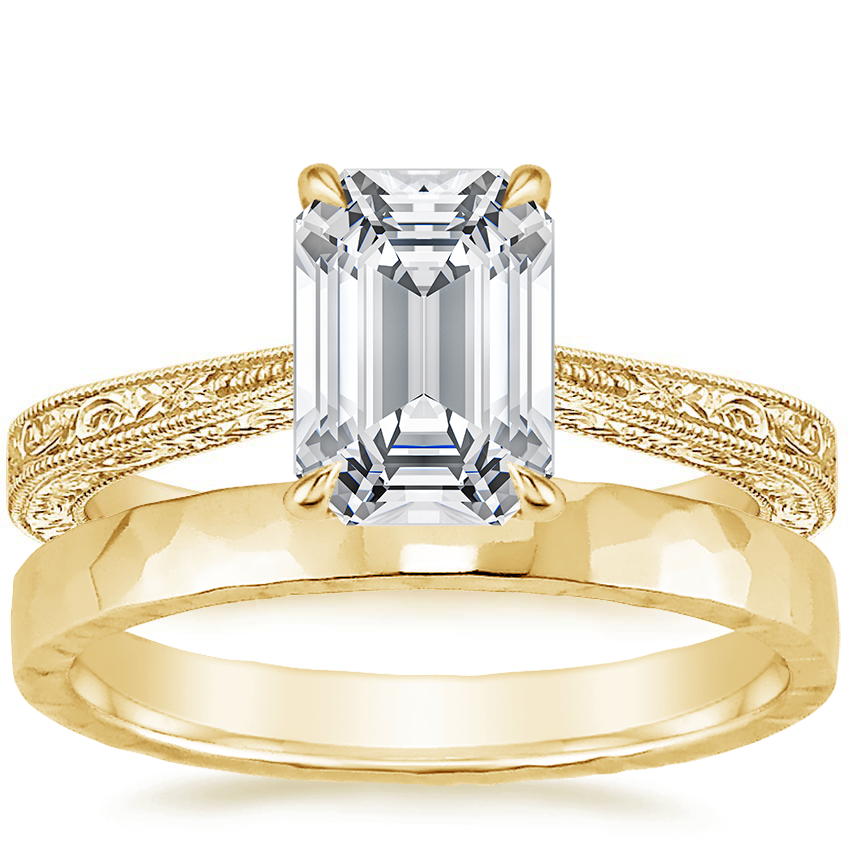 Elsie Ring with 2.5mm Hammered Quattro Wedding Ring in 18K Yellow Gold