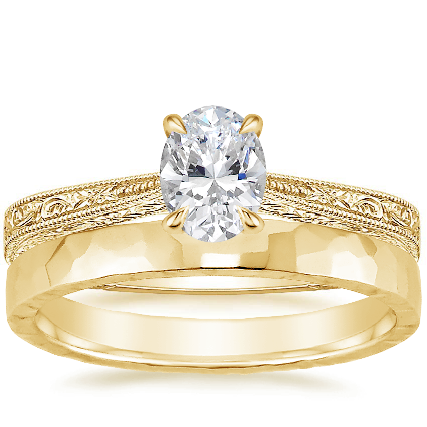 18K Yellow Gold Elsie Ring with 2.5mm Hammered Quattro Wedding Ring