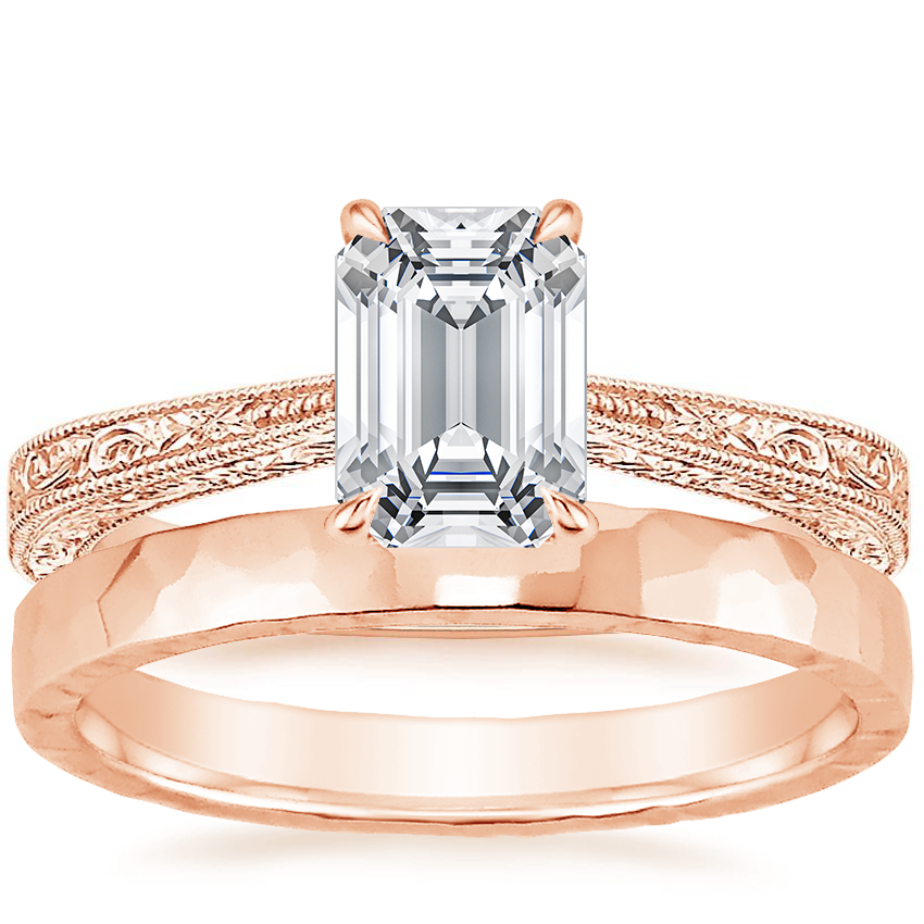 14K Rose Gold Elsie Ring with 2.5mm Hammered Quattro Wedding Ring