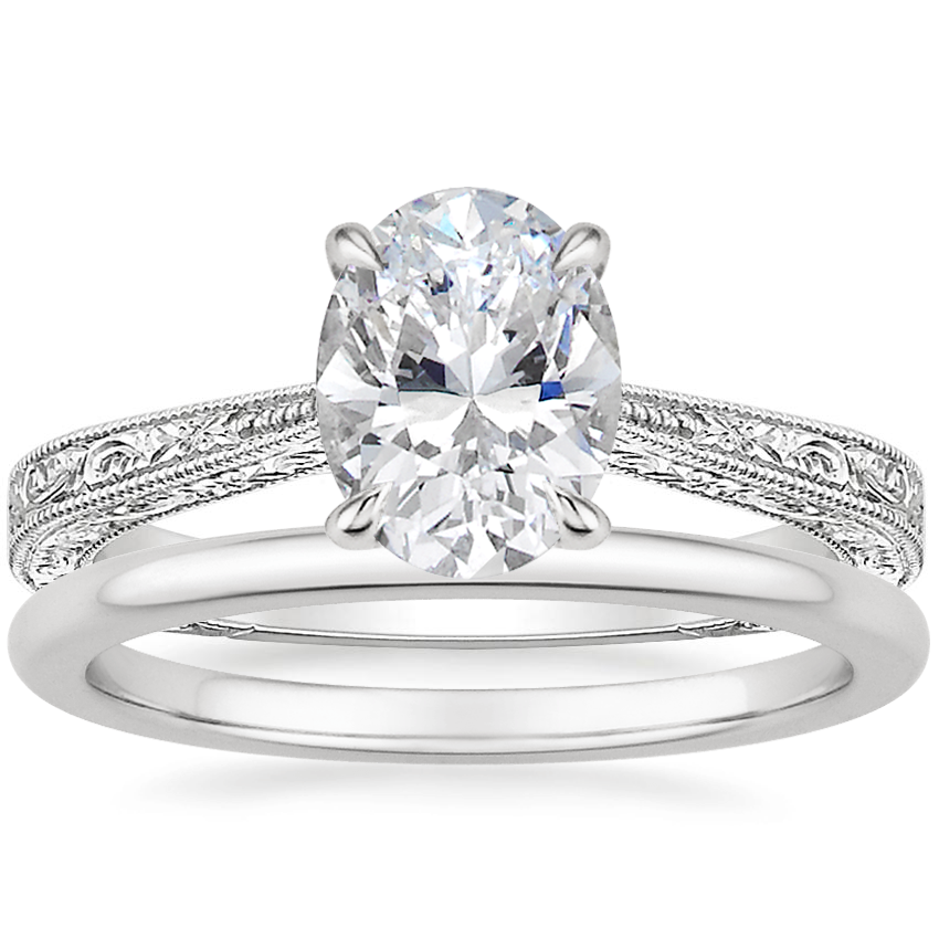 18K White Gold Elsie Ring with Petite Comfort Fit Wedding Ring