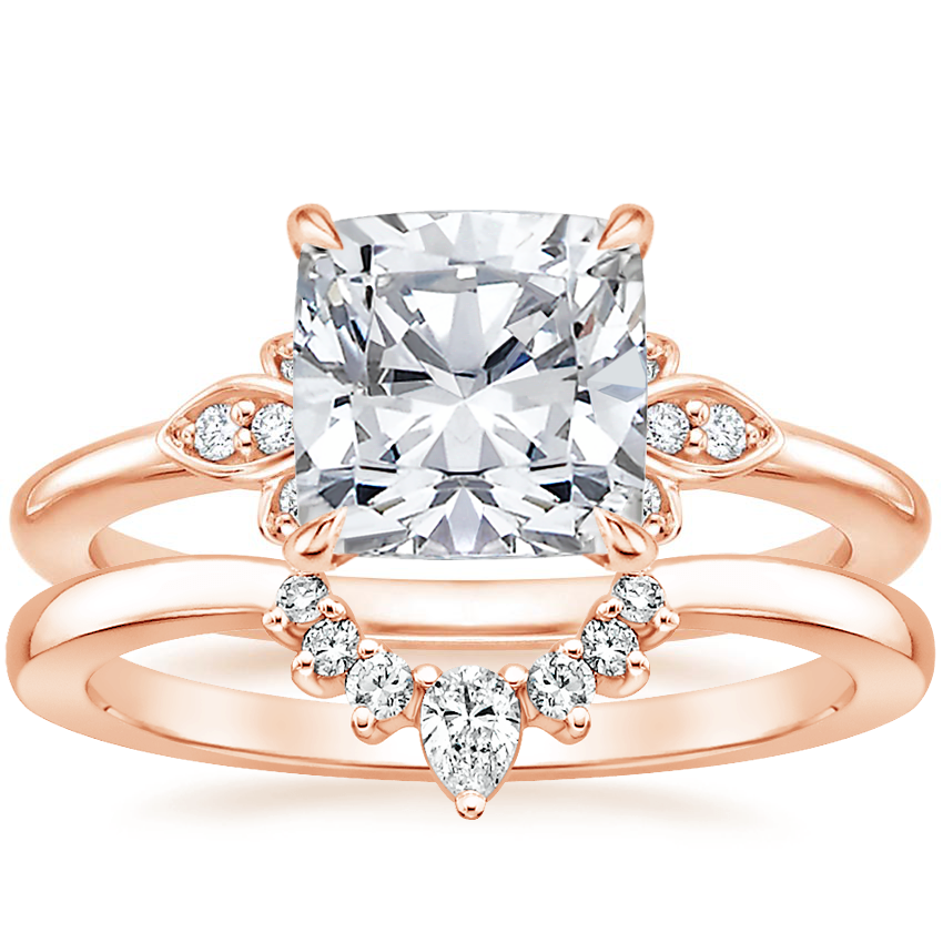 This ring is STUNNING! I found it Summer 2019 on the Brilliant Earth Instagram and immediately knew it was the one. I couldn't be happier about wearing it for the rest of my life. My fiance got me a rose gold band with a round .78 lab created diamond. I think it's the perfect metal to diamond ratio. The pictures really don't do it justice; they make it look more squat than it is in person. In reality, the leaves are much more dainty, making it look like a beautiful blooming flower (which is exactly what I wanted). I could not recommend this ring enough. Well done Brilliant Earth!