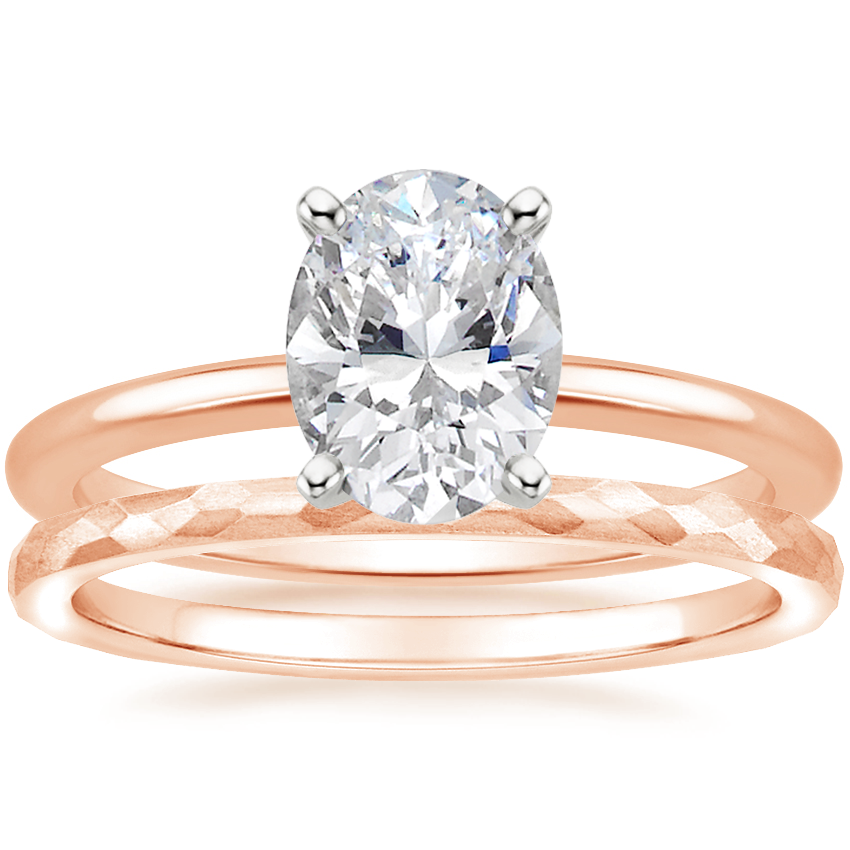 14K Rose Gold Four-Prong Petite Comfort Fit Ring with Matte Hammered Petite Comfort Fit Wedding Ring