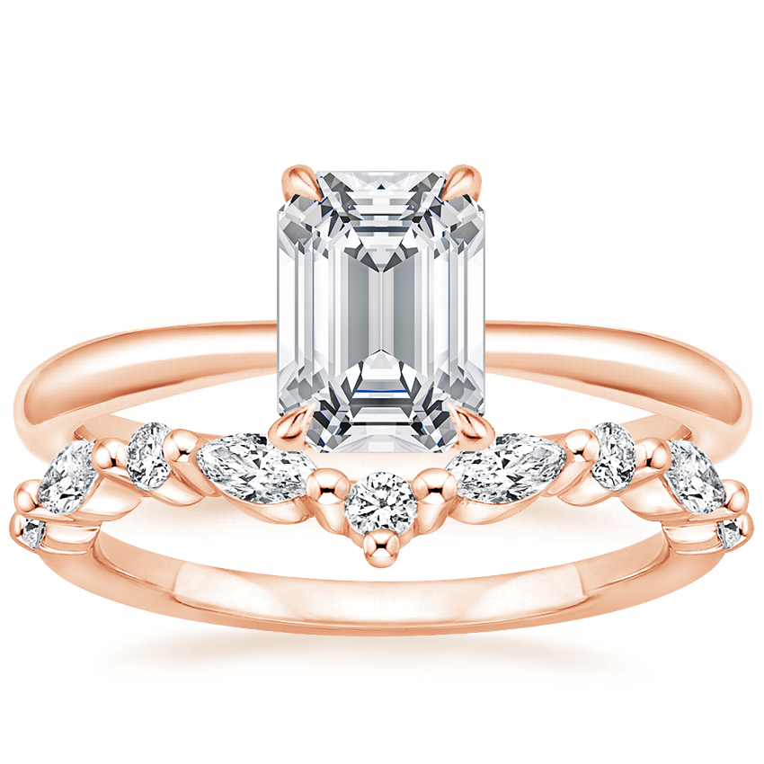 14K Rose Gold Freesia Ring with Curved Versailles Diamond Ring