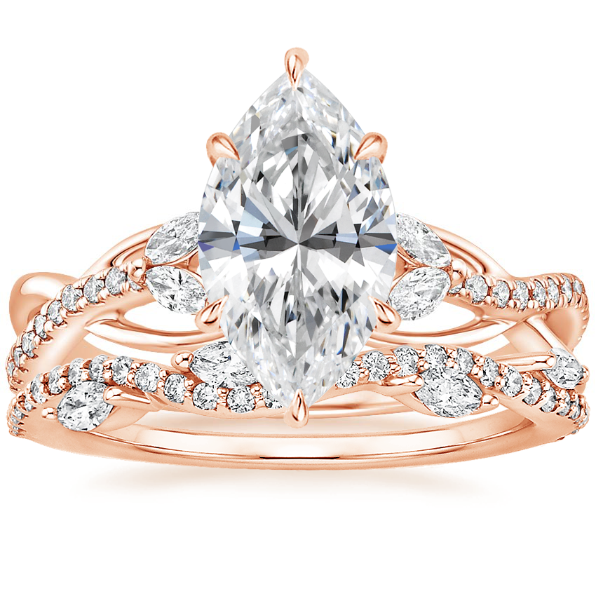 14K Rose Gold Garland Diamond Ring with Luxe Winding Willow Diamond Ring (1/4 ct. tw.)
