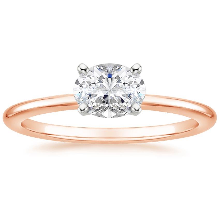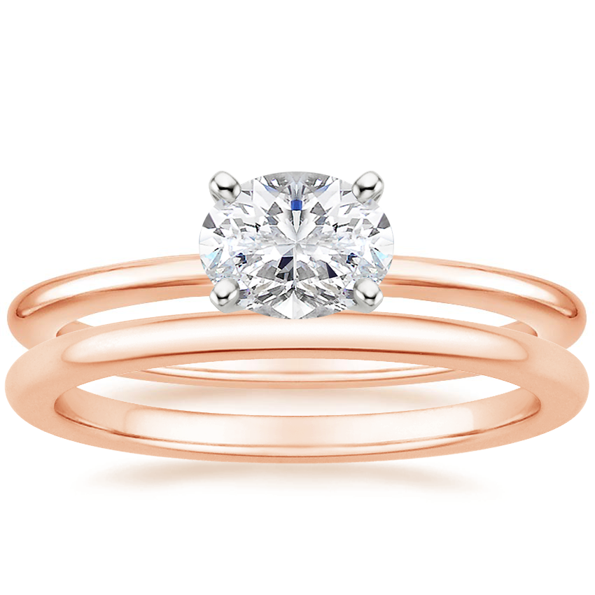 14K Rose Gold Horizontal Petite Comfort Fit Ring with Petite Comfort Fit Wedding Ring with 0.3 Carat Oval Diamond