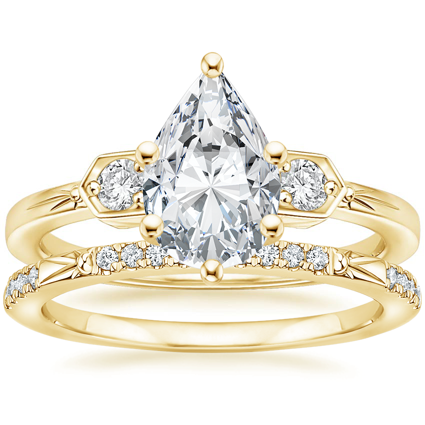 Jaqueline Art Deco Diamond Ring with Cinta Art Deco Diamond Ring in 18K Yellow Gold