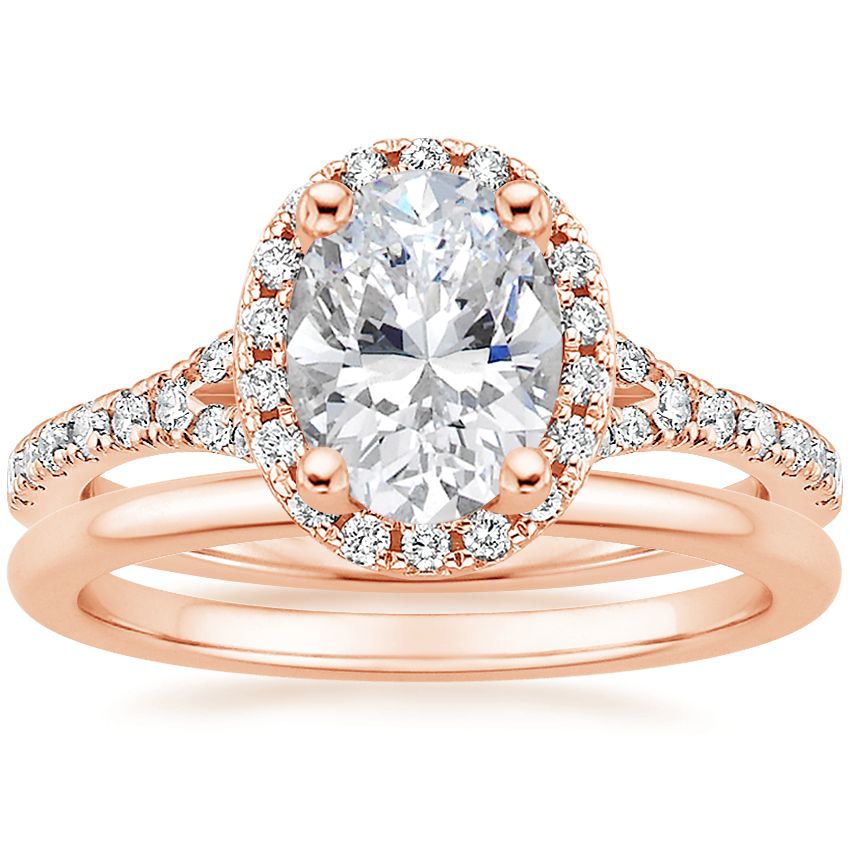 14K Rose Gold Joy Diamond Ring with Petite Comfort Fit Wedding Ring