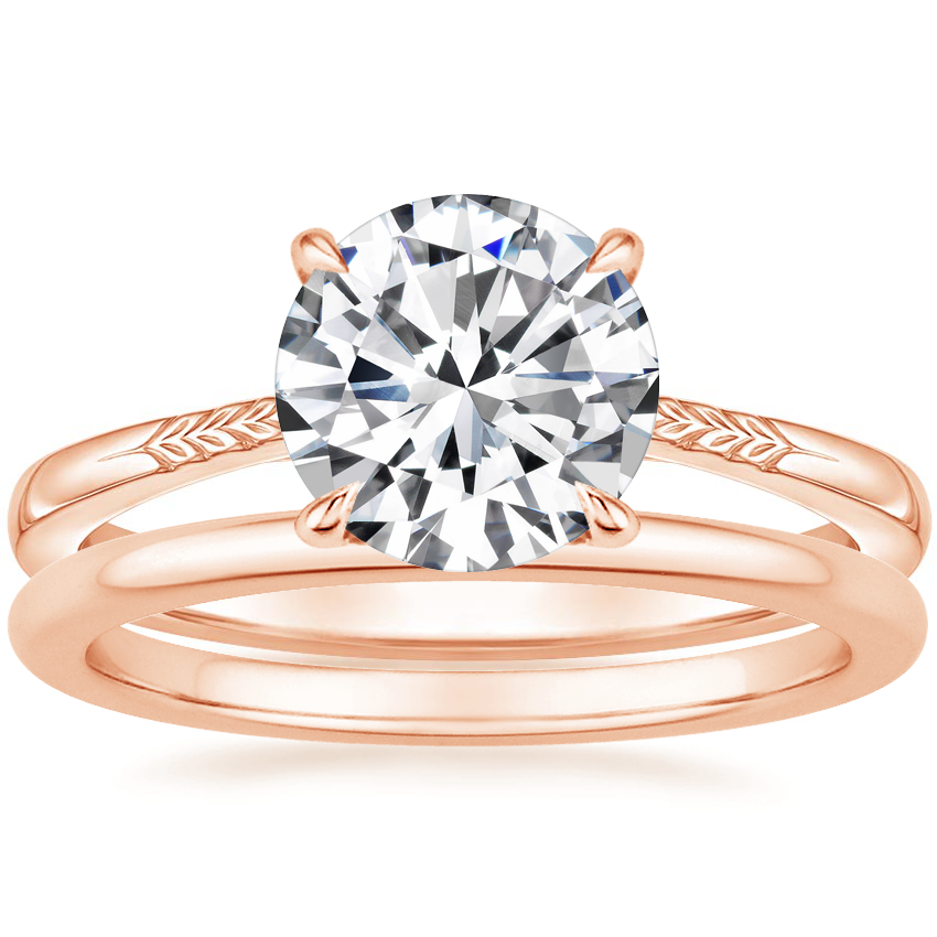 14K Rose Gold Laurel Engraved Ring with Petite Comfort Fit Wedding Ring