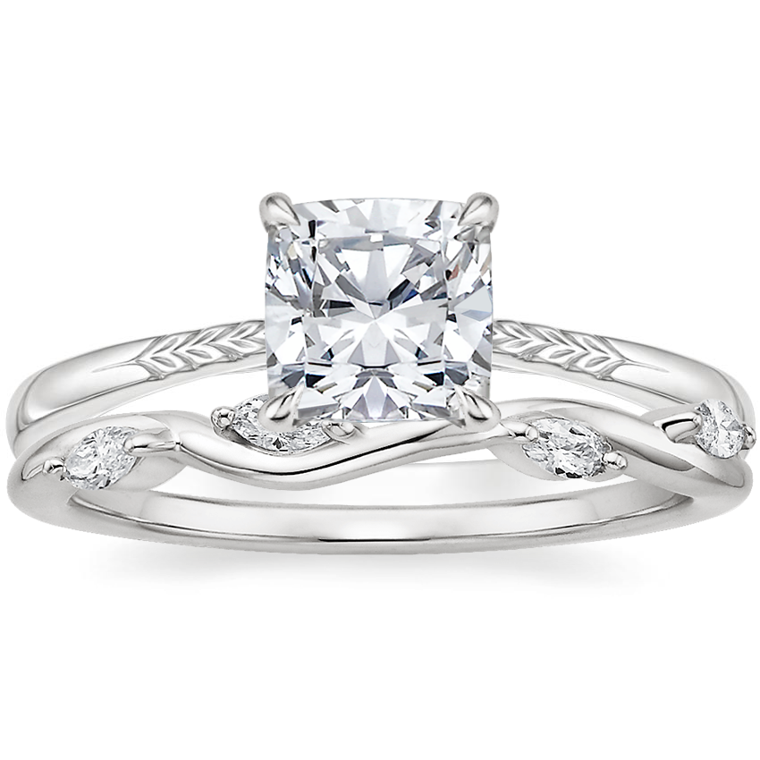 18K White Gold Laurel Engraved Ring with Winding Willow Diamond Ring