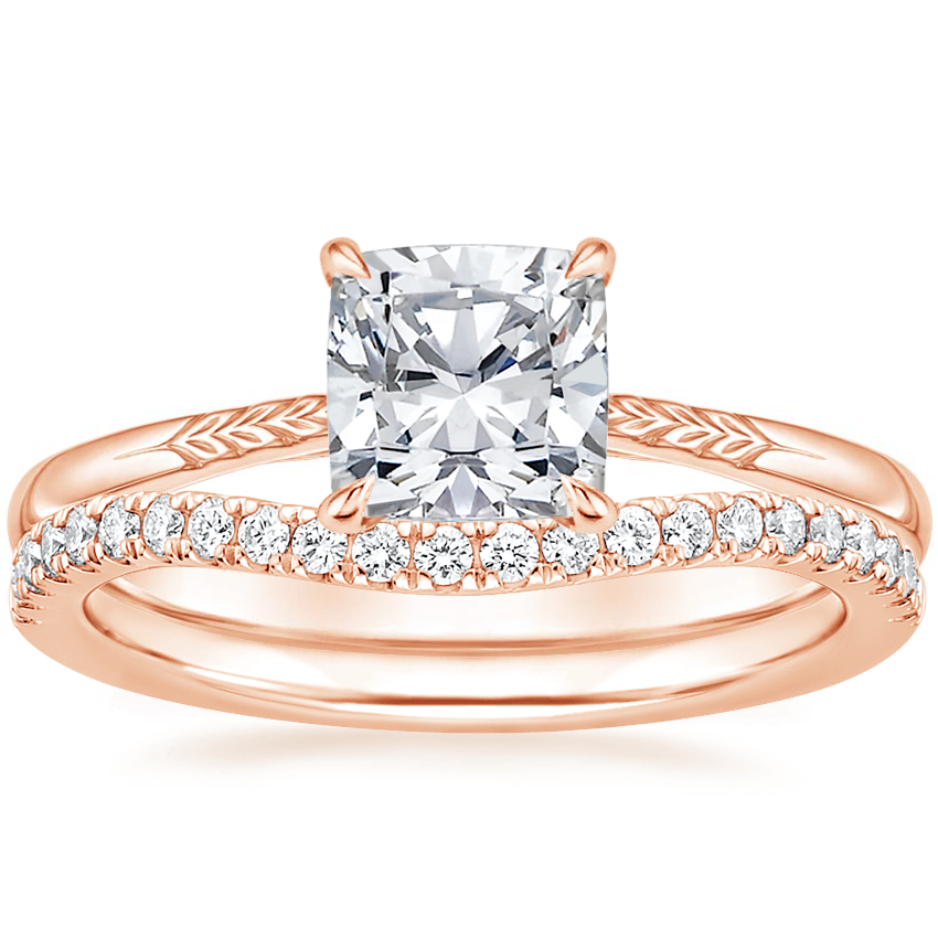 14K Rose Gold Laurel Ring with Curved Ballad Diamond Ring (1/6 ct. tw.)