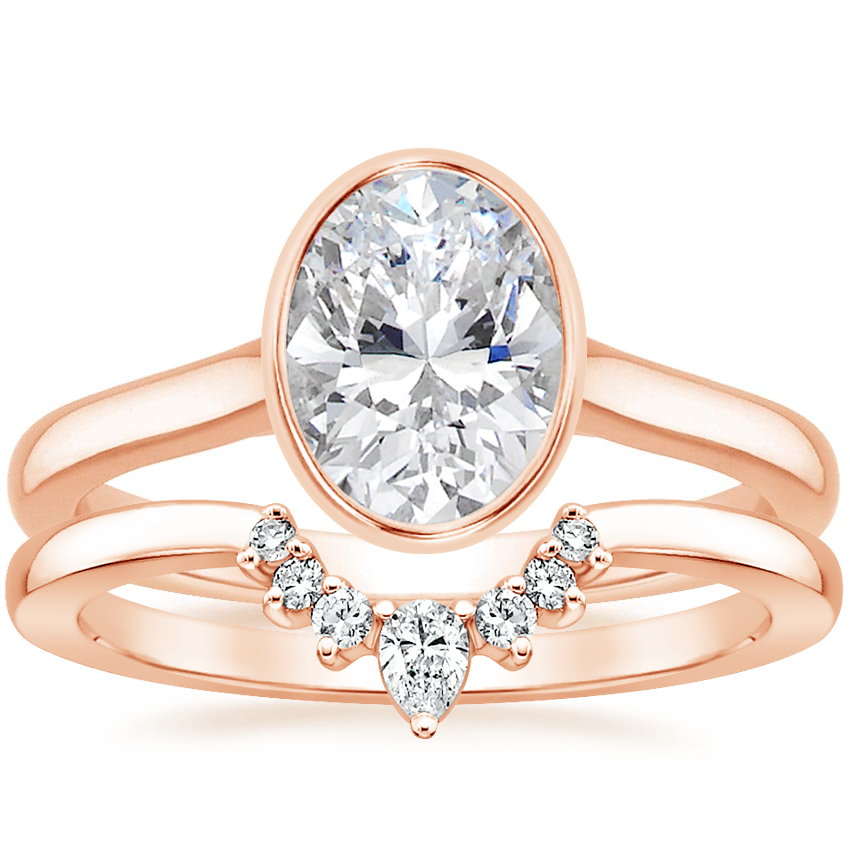 14K Rose Gold Luna Ring with Lunette Diamond Ring