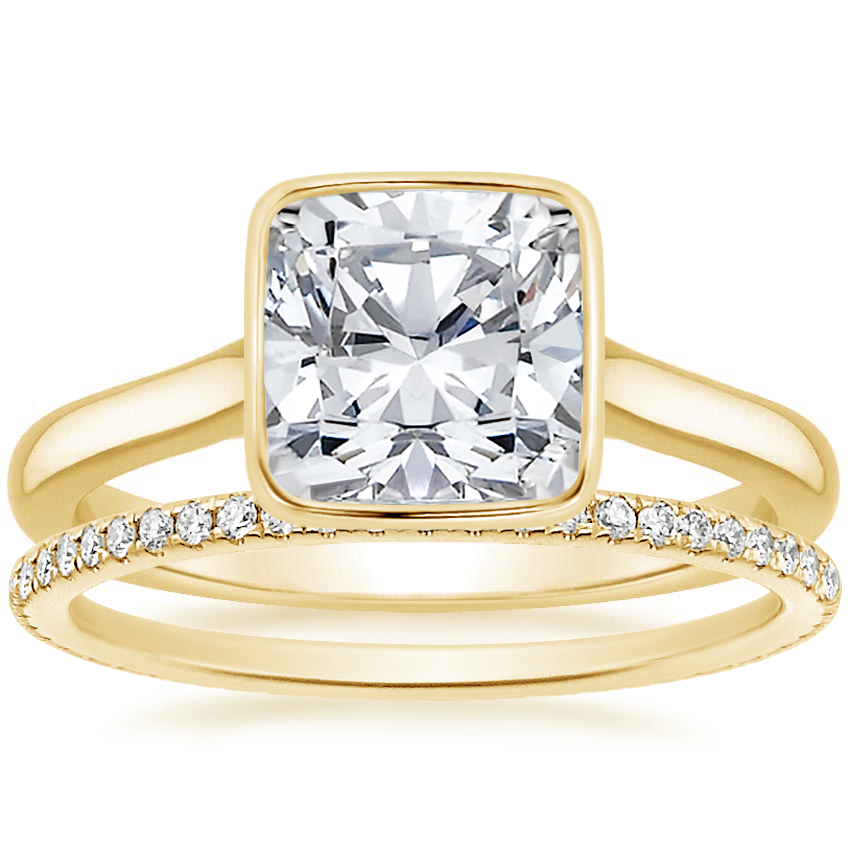 I have the 18K yellow gold Luna ring with a 1.51 carat H/VS2 diamond. This ring is so modern, understated, and practical for daily wear. The bezel protects the center stone while adding a cool, contemporary spin on a solitaire ring (added bonus: I never have to repair prongs.) Normally bezel settings cut down on a diamond's sparkle, but the elevated setting lets plenty of light through. This setting also lets me wear my engagement ring stacked perfectly over my wedding band. The Luna ring is a total standout without feeling too overwhelming for day-to-day wear. I don't feel like I need a diamond band with my solitaire-- this ring looks awesome with my plain 18K yellow gold rope band. Though it would look just as great with any band you already have! I get so many compliments on this ring and Brilliant Earth's commitment to sustainable and conflict-free diamonds is even better. 10/10 recommend the Luna ring.