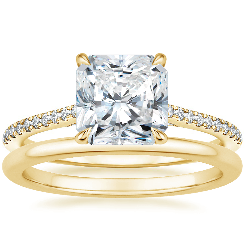 18K Yellow Gold Luxe Dawn Diamond Ring with Petite Comfort Fit Wedding Ring