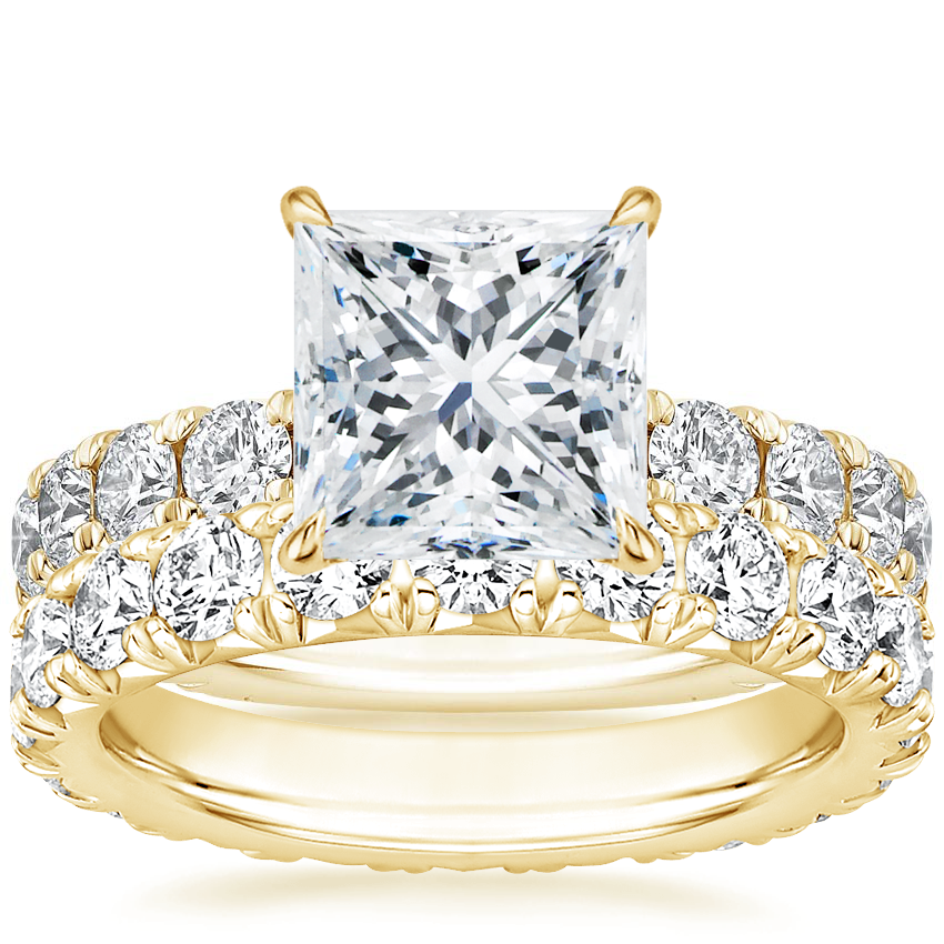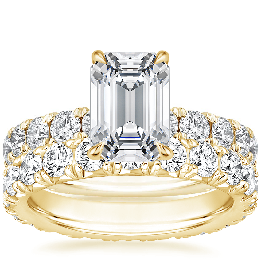 Luxe Ellora Diamond Ring with French Pavé Eternity Diamond Ring (2 ct. tw.) in 18K Yellow Gold