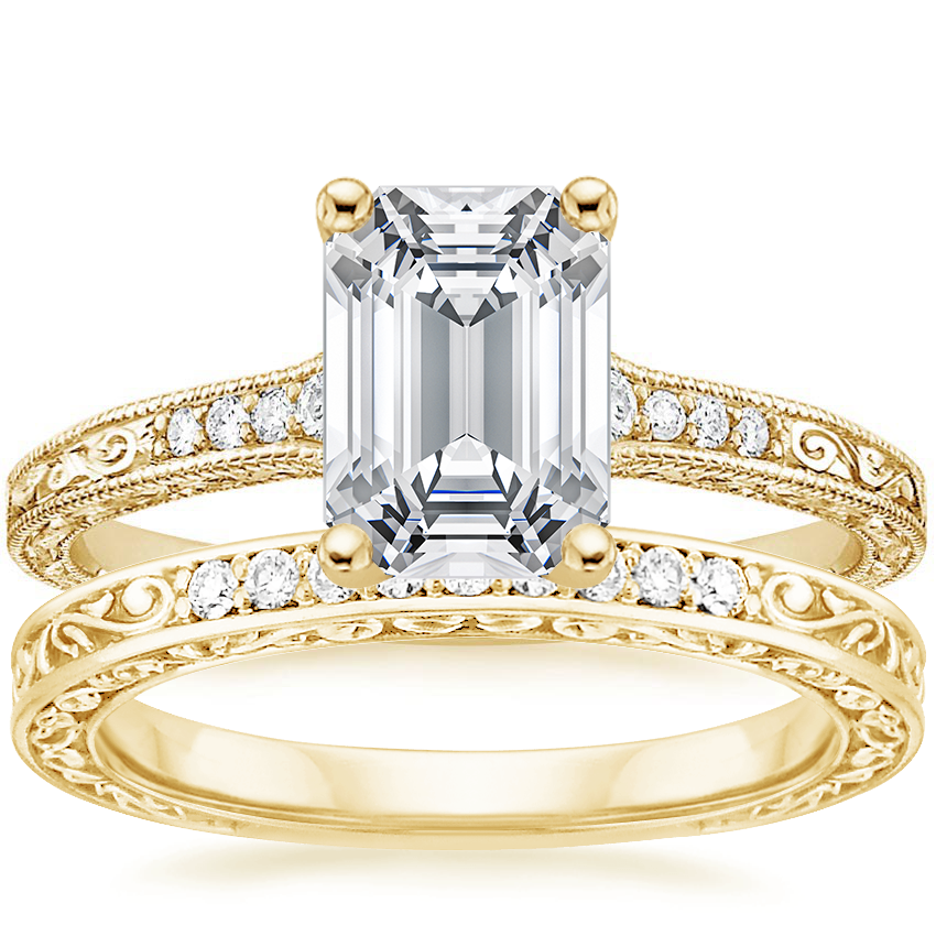 18K Yellow Gold Luxe Hudson Diamond Ring (1/10 ct. tw.) with Delicate Antique Scroll Diamond Ring (1/15 ct. tw.)