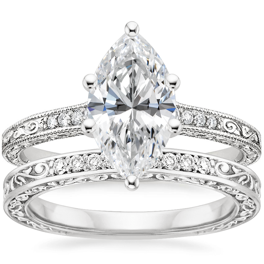 Its beautiful! I chose my own engagement ring since I've always had a design in mind. This band is definitely more intricate than I had in mind but I couldn't stop comparing every other band to this one. And I will add, compared to the images online, its hand carved detailed design is more difficult to see in person since the band is more delicate than I had imagined. HOWEVER it's just simply beautiful and now I cant stop staring at it. For size reference, I went with a 1. 01 Carat Emerald Cut Diamond.